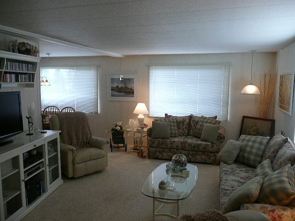 Well maintained double-wide in 55+ park. Newer roof with lifetime guarantee. Newer windows, plumbing and flooring. Stamped concrete patio that is great for entertaining. Great location, clubhouse is a short walking distance. Clubhouse has exercise room, game room, sauna and pool.