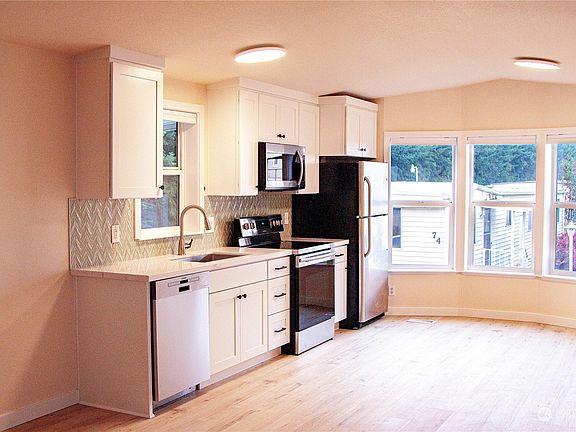 Wonderful home located in Everyone's Favorite 55+ Mobile Home Park Mobile Country Club. Park offers clubhouse w/ kitchen & dining room w/fireplace. Exercise room, library, W/D area & outdoor pool. RV parking for an additional fee is offered. Built in 1997 it has been completely updated, to include: stainless appliances, quartz counters, kitchen cabinets w/ample storage, vaulted ceilings & lots of windows for natural light. New luxury LVP flooring, carpeted bedrooms, fresh paint, new bathroom vanity, tub & shower. All appliances include oven, fridge, microwave, W/D & DW Shed for storage. Guest parking next to home. Close to freeways. Very active club house with monthly activities. Lives like a new home. $6,000 price reduction