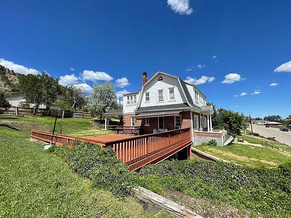 Beautiful Trinidad home with history and loads of potential! This Dutch colonial style home boasts the same curb appeal as it did when built by a local doctor in 1924. Stately red brick with a gambrel roof, expansive 4 lot parcel, and much of the original hardwood floors, trim and hardware, remaining in this 2700 sq ft 3 bedroom 2 bath home. In addition to the welcoming front porch, enjoy outdoor living spaces on all sides, including a private shaded patio accessed through double French doors off the living room, as well as a sprawling engineered deck with electric awning for the afternoon sun, built in storage benches and quintessential Fisher's Peak views, plus the small covered patio off the kitchen opening on the large fenced grassy back yard with fruit trees, sprinkler system, and alley accessed off street parking. An added office/den with built in shelving and the updated kitchen bring modern touches, as well as new roof in 2017. Being sold 'as is', this home is an incredible opportunity with great bones and unbeatable location, looking for buyers with the vision to bring your own personal touches and grow your equity.