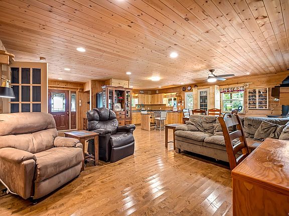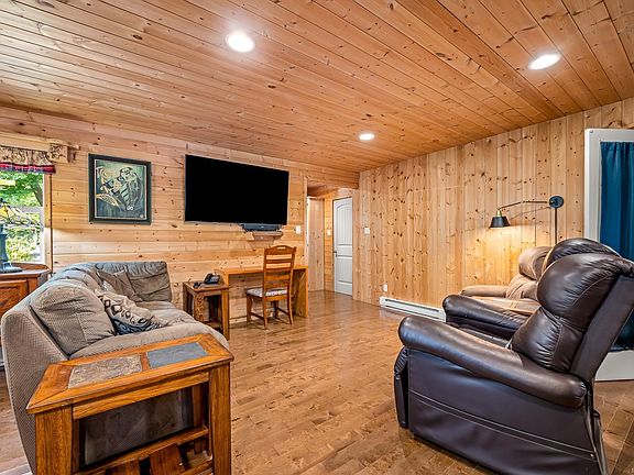 Nearly half an acreWarm wood panelingNordic birch tongue-and-groove flooringCozy wood stoveInviting cabin-like atmosphereOpen-concept layoutWrap-around covered deck