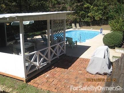Two-story home situated on 3 acres in beautiful, quiet, lake community. 2700 sq ft with 4 or 5 bedrooms and 2.5 baths. House sits on a private setting surrounded by woods on 3 sides and miles of trails to the rear. Beaver Oaks subdivision has a private lake entrance with boat ramp, dock, and picnic tables. Enjoy the private setting on the screen porch which overlooks the in ground salt water pool with Polaris cleaning system. Entertain family and friends at the outdoor entertainment area with kitchen sink, cabinets and full size refrigerator with ice maker while the kids enjoy the basketball pad and playset. Downstairs of house consists of 20x22 family room, separate sitting/ living room, dining room, and den with fireplace (currently being used as 5th br). Upstairs consists of master suite, and 3 other spacious bedrooms. Separate heating and air units for upstairs and down. We are including our 19' Monteray ski boat with skis, kneeboard, large 4 man tube, and 9 ski vests. Come enjoy outdoor fun in your own private setting! Email for additional pictures!Additional property info: http://www.forsalebyowner.com/listing/4-bed-Single-Family-home-for-sale-by-owner-1415-Beaver-Oaks/23928686?provider_id=28079