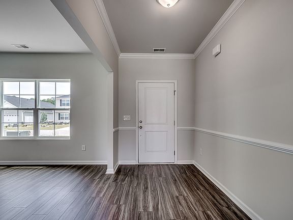 Welcome home to the Russell! Come see your new move in ready home at Merrill Villas! Back patio to enjoy your private backyard which can be fenced. This two-story home features four bedrooms, and a convenient flex space downstairs for that extra space you need. The kitchen comes equipped with white cabinets, granite countertops and GE stainless steel appliances and gas range. Luxury vinyl plank flooring runs throughout the open concept kitchen, eat-in area and great room and wet areas. Upstairs, the primary bedroom features 2 walk-in closets and en suite bathroom featuring a raised vanity with dual sinks, quartz countertop and linen closet. Rounding out the upstairs are 3 additional bedrooms one of which features a private bathroom and a conveniently located laundry room. Located in Carolina Forest - one of the most popular communities in the area, with an award winning school district - just west side of the Intracoastal Waterway. Not only is your new home close to great dining and shopping, you'll be less than 5 miles from the beach and close to championship golf courses giving you that living-the-good-life feeling. This natural gas community gives you easy access to the Myrtle Beach Airport and HWY 31 allowing you easy access to Myrtle Beach, Conway, North Myrtle Beach and the rest of the Grand Strand. Photos of actual home.