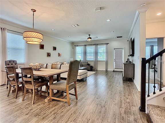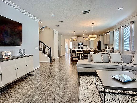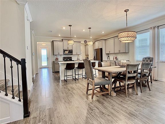 - Interior Features: Master Bedroom Downstairs, Crown Molding, Window Treatments, Open Floorplan, Solid Surface Counters, Kitchen/Family Room Combo, Dry Bar, Stone Counters, Tray Ceiling(s), In Wall Pest System, Coffered Ceiling(s)