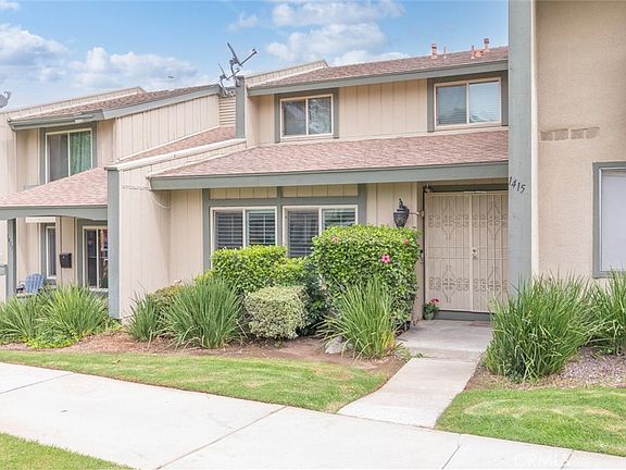 Discover the perfect blend of style, and comfort in this beautifully turn-key condo, nestled in the amenity-rich waterfront community of Village Grove with Low Taxes. As you step inside, you're greeted by a stylish foyer with eye-catching herringbone brick style flooring. The bright and open living area boasts vaulted ceilings, large windows with plantation shutters, tile and laminate flooring. The living room includes a converted space, ideal for a home office or 4th bedroom. The chef’s kitchen, complete with granite countertops and ample cabinetry, seamlessly connects to the dining area, where the sliding glass doors lead to your private courtyard. The first floor also features a convenient half bath and a laundry room with washer and dryer hookups. Upstairs, the primary bedroom offers a tranquil retreat with access to an updated bathroom featuring a walk-in shower with glass sliding door. Two additional bedrooms complete the upper level, providing plenty of space for family or guest. Step outside from the kitchen to your private courtyard, perfect for lounging, or barbecuing, with the soothing sound from the water fountain. The attached two-car garage adds extra convenience, while a playground and pool are located just steps from your front door. Village Grove offers a range of amenities, including lake with walking path, two pools, tennis & basketball courts, BBQ & playground area, pavilion rentals for parties, catch & release fishing, pedal boats rental, and nearby trails for walking & biking. With easy access to major freeways, toll roads, shopping, and entertainment, this condo presents an exceptional lifestyle opportunity. Don't miss out on this opportunity.