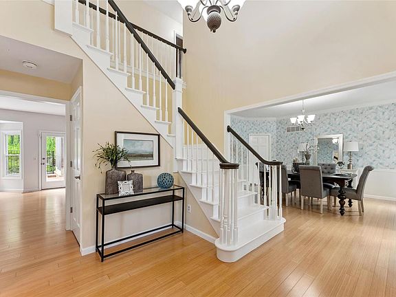 Fresh paint and a new look to this beautiful 4BR/3BA home with a private tranquil backyard but w/o a lot of backyard work. Eco-friendly bamboo flooring, rooms bathed in natural light, skylights, and large windows create a warm and inviting atmosphere. The spacious renovated kitchen w/granite counters, ample cabinets and a breakfast room has a slider to the deck. A cool space off kitchen for a butler pantry, office or coffee bar. The primary bedroom is a true retreat w/stunning en-suite bath; a private oasis for relaxation. Three add'l BRs and hall bath round out the upper level. Relax and unwind after a long day on the screened deck w/hot tub while adjacent is an awesome swim spa which can be used for training, water aerobics or a large hot tub! The lower level provides an office and recreation space that is ready for your finishes, as well as room for storage. Perennial gardens were planted to be eco-friendy, attract multiple types of butterflies and require no water other than rain.