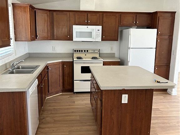 2007 converted manufactured home with vinyl flooring, ceiling fans, blinds and a good sized laundry room. Spacious living room that opens up to the kirchen with large island, built in microwave and fridge.