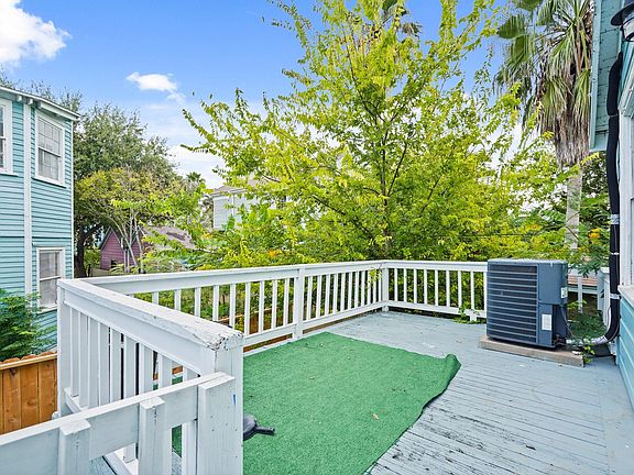 Tucked away for added privacy, 1415 Church St Unit Rear is a spacious 1,5,89 sqft two-story residence offering 3 bedrooms and 3 full bathrooms. Recently refreshed, the home features rich wood-look flooring, updated light fixtures, and a bright kitchen with stainless steel appliances, white cabinetry, and decorative tile accents. Each bedroom offers serene comfort, while three full baths ensure convenience and privacy for all. Enjoy your own private deck overlooking the backyard, ideal for relaxing or entertaining. A rare blend of space, style, and location in Galveston's East End.
