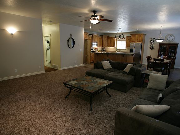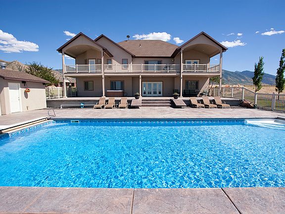 Amazing home with all the extras! Main floor master suite. Beautiful open family room kitchen area. Emergency Generator, Granite Counters, Theater Room, Den, 5'x5' Walk-in Safe. The perfect backyard with low cost/low maint. Salt Water Swimming Pool with Safety Cover, Volleyball Court, and Hot Tub. A HUGE 54'x84' Outbuilding w/12'&14' doors can easily be converted into an open barn - but setup for all your toys right now! - This building alone is valued at over $130,000! Zoned for farm animals - includes a well with 4 water shares. Lounge chairs in theater, pool table, hot tub, and all refrigerators can be included in sale.