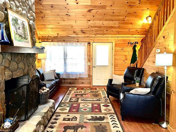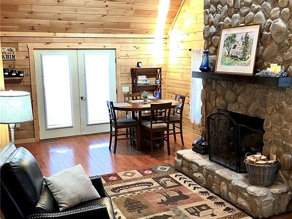 WOODRUN - Make your retreat to this adorable 2-bedroom, 2-bath, 1.5 story log cabin. The septic tank has been installed to accommodate 3-bedrooms (if you want to grow your sleeping space). This home is tucked away on approximately 2.69 acres. Basement has been finished as a family room with a free-standing wood stove (basement has heat but no air conditioning). There is a vaulted ceiling in the living room on the main level with a stone fireplace. Come relax on the covered front porch or bar-b-que on the large deck. This one won't last long!