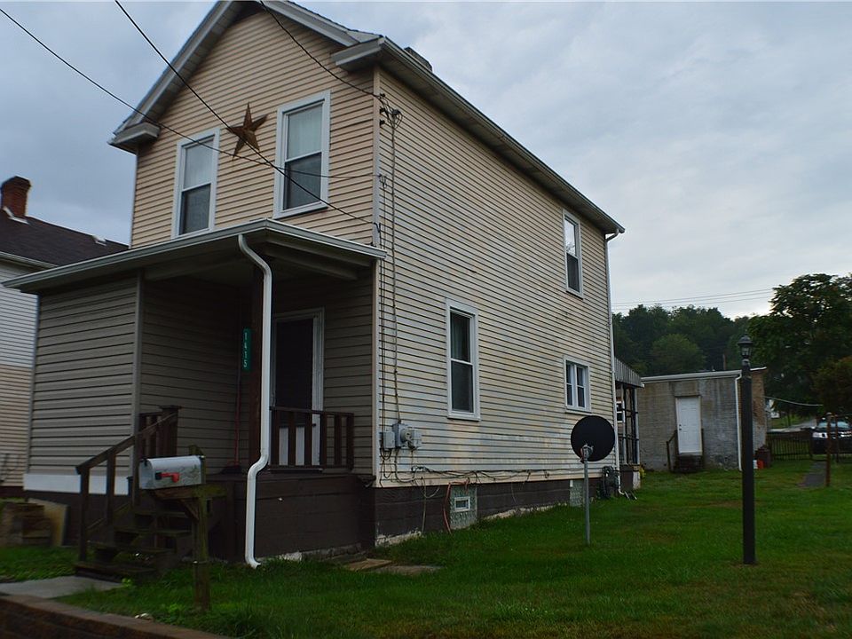 Aluminum sided 2story is clean and ready to move into. Large Livingroom with hard wood floors, Eati-in-kitchen w hard wood floors, butcher block counter tops, first floor full bathroom. Upstairs there are 2 bedrooms. Full basement with double concrete wash tubs and laundry hook ups. Back porch. 2 car detached garage. Level lot is small and easy to take care of.