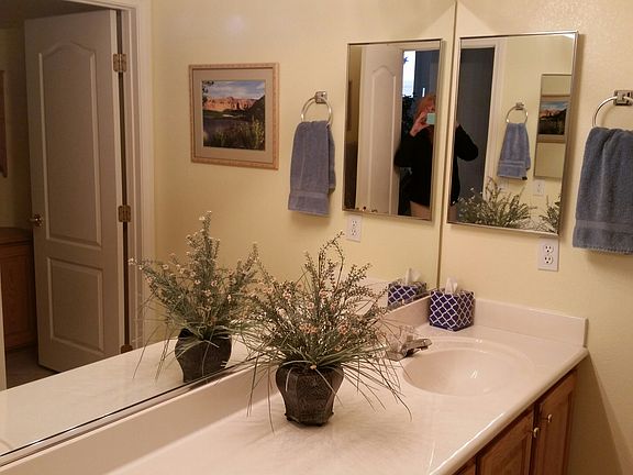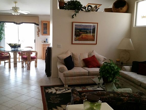 It's resort style living at Sunset Greens with 2 swimming pools, hot tubs, lush landscaping, pet friendly walking trails and gated RV storage onsite. Located on the Casablanca golf course, this Plan 5 townhome has an open floorplan with vaulted ceilings, 2 bedrooms, 2 bath and a den that can be used as a 3rd bedroom. HOA maintains the townhome exterior and landscape- front & back. Homeowners also enjoy golf and restaurant discounts at the Casablanca golf course. This is a turn key opportunity - Entire furnishings available as per separate agreement. Live in it or rent it, its a great investment.