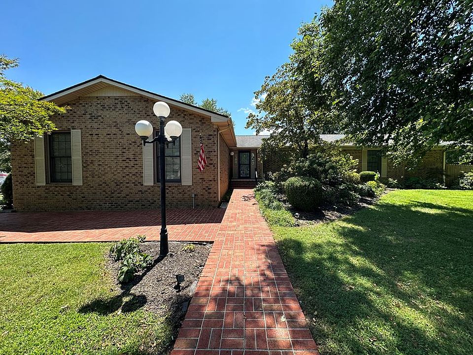 This 4 bedroom 2.5 bath one level home is located in a prime location in town. The lawn is exceptional, A nice office area is located just off the kitchen. Hallway to bedrooms is extra wide in case there is a need for a wheelchair, etc. Located within walking distance to groceries, churches, and shopping. Private fenced backyard. Attractive arbor just outside the rear of the home. Wonderful built-ins in livingroom. New stainless refrigerator is being put in the kitchen and a lg. walk-in pantry is a great feature in the kitchen. Two full baths plus 2-half baths are conveniently located throughout the home. Mature landscaping and wonderful trees gives added curb appeal to this residence.