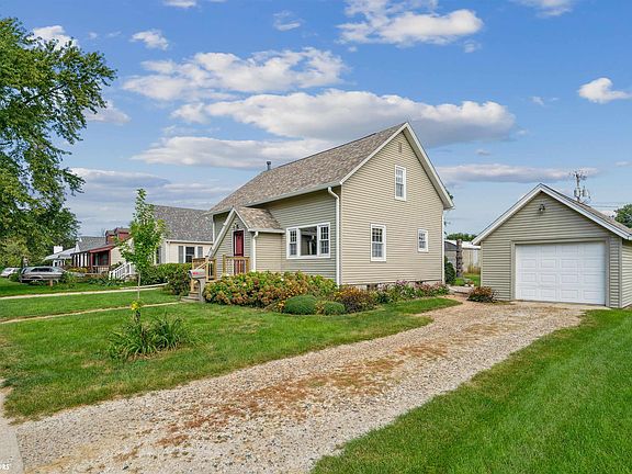 Seller will credit buyer up to $3,000 at the time of closing for prepaid and closing cost items, with an acceptable offer. With 4-bedrooms & 2-bathrooms this home perfectly blends timeless charm with modern updates, creating a warm and inviting atmosphere throughout. Step inside to be greeted by a stunning glass entry door and hardwood flooring on the main level that add character and style. The kitchen has been updated with cherry cabinets, quartz countertops, sleek stainless steel sink, modern fixtures, and spacious center island that offers both prep space and casual seating. One bedroom is conveniently located on the main floor and could easily serve as a home office or guest room. Upstairs, you'll find three generously sized bedrooms, great closet space, along with a nicely remodeled ¾ bathroom. Outside, the backyard is a retreat of its own, featuring thoughtful landscaping, a wooden deck, and a brick patio—ideal for barbecues, gatherings, or simply enjoying a peaceful evening. A detached garage and additional storage shed provide plenty of room for tools, toys, and seasonal items. Location is everything, and this home delivers. It's centrally located right next to Nevada's elementary, middle, and high schools.. Plus, it's within walking distance to parks, the bowling alley, convenience stores, and more.