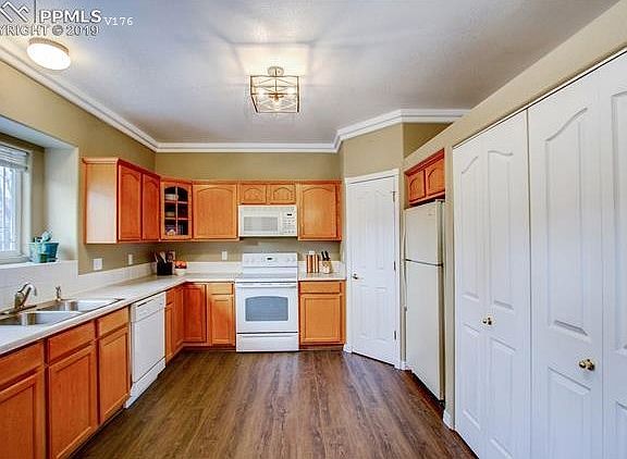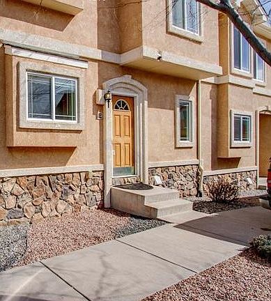 Maintenance free living! Beautiful stucco & stone in the desirable west side location. Lovely townhome style, close to shopping, restaurants, parks, downtown, Old Colorado City, & Garden of the Gods. Squeaky clean & move in ready with all these upgraded features: new luxury vinyl plank flooring in dining room, newer paint throughout, water heater replaced 2020, newer central A/C installed 4/2019, new commercial grade Berber carpet, new water pik shower heads, 2 year old Whirlpool appliances including washer, dryer, & smooth top convection electric range/oven, 2 year old light fixtures, custom coverings on all sliding doors, main level custom window coverings, tinted master bedroom windows, crown molding, new brushed nickel hardware throughout, newer engineered hardwood in kitchen & master bath, ADT security (leased). Main level light & bright kitchen with large pantry. This was the builder's unit, so he added a tiled window ledge above the sink. This open floor plan has an attractive great room with 9' ceilings, built ins & gas log fireplace The dining area adjoins. Master bedroom has the desirable 5 piece bath, spacious walk in closet + 9' tray ceilings. Walk out from the master bedroom & great room to the 13' x 4' balcony with mountain views! Lower level has a large family room with walk out to a concrete patio with mountain views+ 1 full bath with new upgraded tempered shower doors & 2 nice sized bedrooms. Convenient to I-25! You will love this property! WELCOME HOME!