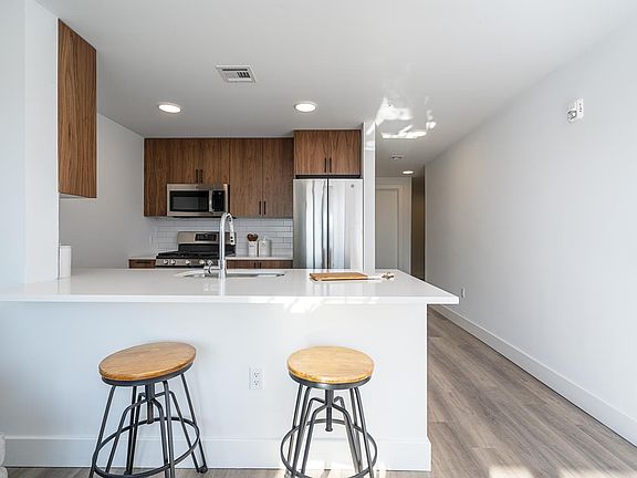 Located just west of Hoboken on the Palisade cliffs, 1415 Manhattan offers great commuter access to NYC, large one and two bedroom floor plans to accommodate the home office, and proximity to all of the amenities of uptown Hoboken, including Trader Joe's. Each home includes upscale kitchens with quartz crystal countertops, stainless-steel appliances, washer/dryer and high end finishes. Building amenities include a community room, gym, bike storage and 4,500 square foot common roof deck. Parking available $225. Pictures of Model Home Pets allowed with One - Time $500 Fee