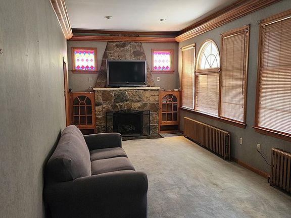 Lots of natural light in this spacious 3 story home with room for everyone. Family room w/stone fireplace, open concept living room / dining room with beamed ceiling and open staircase, brick wood burning fireplace separating living room & dining rooms with hardwood floors and kitchen w/eat-in area. Pantry & 1/2 bath. 15x20 sunroom out back overlooking yard. Second floor has 3 bedrooms and remodeled full bath, one bedroom has large dressing room and large hall with picture window. 3rd level has living room, bedroom and 3/4 bath. Detached 2 car garage and off street parking and fenced yard.
