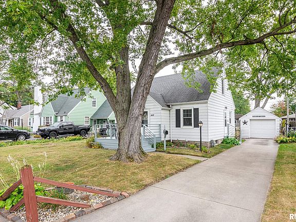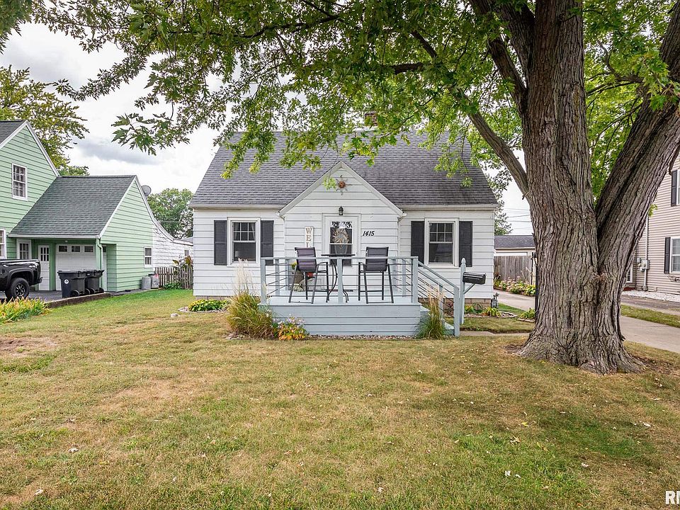 Come and enjoy this adorable, well maintained, story and a half on the edge of Pekin. Enter from the adorable porch into the large living and dining combination space flooded with beautiful natural light through all the windows. Two entry closets and plenty of space for entertaining! Flow into the kitchen with additional counter and cabinet space for the chef. Easy access with the side door, make bringing in groceries a breeze. Continuing on the main level a full bathroom and large bedroom, lead out to the quaint 4 seasons room accented with a door out to the spacious fenced backyard. The large upper room, currently serving as a primary bedroom, boasts a private sitting area, great place for a reading nook. Or transition it into a multipurpose room for your needs. The partially finished basement boasts plenty of storage, an additional area for entertaining or lounging and a non-conforming third bedroom. The patio space and one car garage with shed space to the back complete this package.