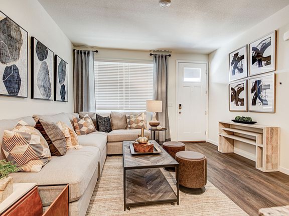 The Melbourne is a spacious single-family home with 3 bedrooms, 2.5 bathrooms, 1,468 square feet and a 2-car garage. As you enter the foyer, to the left you have two bedrooms and a shared bathroom. To the right is the laundry room with full washer and dryer for added convenience. The oversized kitchen is open to the dining and family room, perfect for entertaining and includes stainless steel appliances. The main bedroom, bedroom 1, is off the family room and features a dual vanity, spacious walk in closet and large shower. Enjoy the covered patio with your private fenced backyard and included front yard maintenance. You will enjoy added convenience in your new DR Horton home with our Home is Connected feature. Using one central hub that talks to all the devices you can control the lights, thermostat, and locks all from your cellular device. Built and professionally managed by America's number one homebuilder, D.R. Horton, your new home is constructed with quality and care, so you can enjoy the carefree lifestyle you deserve. Settle into life at Creekside, a welcoming community boasting brand-new townhomes for rent in Aurora, CO, with the perfect blend of modern design and cozy touches. From fully equipped kitchens to a private two-car garage, you're treated to convenience around every corner. Travel across hardwood-style flooring and admire modern cabinetry and stainless-steel appliances. You can also look forward to ample conveniences like a washer and dryer and spacious walk-in closets. Additionally, dual-sink vanities and walk-in showers exude a spa-inspired feel that will elevate your daily routine. Creekside is proudly professionally managed and maintained, so you can look forward to the spaciousness of a home with the ease of renting. Pets are more than welcome and will love exploring the lush landscaping around your home as well as the onsite dog park!