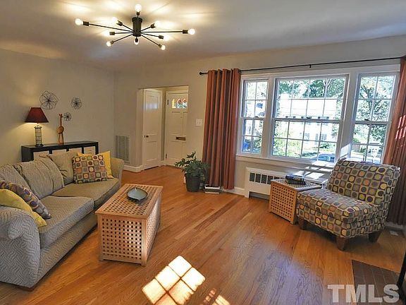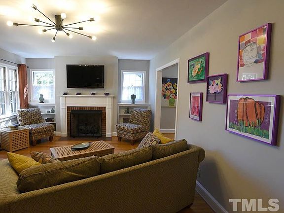 Charming, lovingly maintained 1950s brick home in Trinity Park features a traditional layout with 2 bedrooms down and 2 up and a bath on each floor. Large living room has a fireplace and built-in bookshelves. Hardwood floors throughout with tile flooring in the kitchen and baths. Detached garage. Fenced back yard with lovely stone patio. Parking pad with space to turn around in back, or park on the street. Finished basement/laundry/workshop. Major appliances convey.