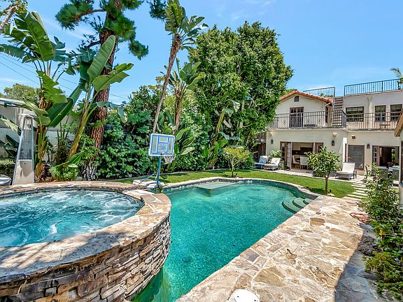 This beautifully fully furnished renovated 3,000 sq. ft. gated Spanish/Mediterranean home in the sought-after Spaulding Square neighborhood offers the perfect blend of luxury and comfort. Located just a half black from Sunset Blvd, but completely sheltered from the noise and traffic, this home is in the middle of one of the most beautiful, tree-lined streets of the historical neighborhood. The open floor plan features a newly updated gourmet kitchen that flows into a spacious den, both overlooking a private tropical backyard oasis with a pool, spa, and patio. The main house includes 3 bedrooms, an office, 2.5 bathrooms, and a bright living room that opens to the den, creating a seamless flow for entertaining and everyday living. In addition, there's a 500 sq. ft. guest house/pool house with an additional bed and full bath, ideal for visitors or separate living quarters. Enjoy the convenience of being within walking distance to popular restaurants, coffee shops, Trader Joe's, and Bristol Farms. This home offers the perfect combination of modern living, outdoor relaxation, and city access.
