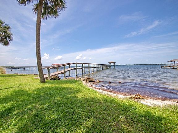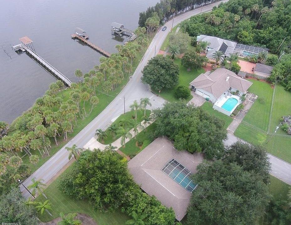 DIRECT INDIAN RIVER, COVERED DOCK W/WATER & ELECT TO CLEAN FISH & WATCH ROCKETS LAUNCH! Corner 1/2acre lot, beautiful oak trees, manicured lawn and circle drive. ONE OWNER HOME meticulously cared for. Updates include renovated island kitchen w/SileStone counters, custom cabinets, drawers & china display. View of river from all Living Areas. Newer double pane windows, Master Bedrm offers TWO large custom closets. Renovated Master Bath with walk-in shower, double sinks, granite counters & bidet, lots of storage. Covered patio for outdoor seating/dining, screened pool with spa for added pleasure overlooks private backyard. Propane tank to heat the spa when desired. Roof 2003, kitchen 2002, AC 2007. Did I mention 3car garage?
