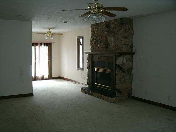 Exterior Features: White single story home has concrete drive and attached two car garage. asphalt shingle roof seems to be in good shape, home's curb appeal is good, looks in healthy condition. Interior Features: Seems to be in nice condition overall, walls and flooring appear clean throughout. Living room is carpeted with stone fireplace & wood trim, looks in good shape. Kitchen looks in good condition also, tile floor, cabinets, sink, & appliances present. Beds have carpet/wood floors, white/wood panel/grey walls appear in good condition. Baths also in good order with appliances in place. Looks to be in near move-in ready shape.