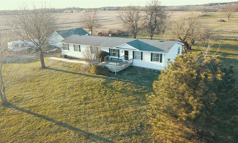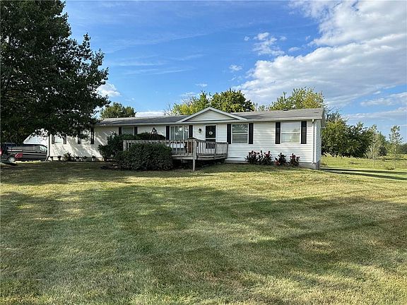Beautifully updated house on 5 acres with a shared pond stocked with bass. Enjoy the peace and quiet of country living and take advantage of low Johnson county taxes! Large 3 bedroom manufactured house with an open floor plan. The bedrooms are all very spacious. Everything is on the main level! Huge Mudroom/Laundry/Utility/Pantry room. Office is just off the living room. House sits on a 2,000 sqft unfinished basement. So much room and so much potential to add several more bedrooms and even a bathroom downstairs. New septic system installed August of 2022. Detached 2 car garage with power. Property is fenced on 3 sides. Quiet road just a short drive on gravel and close to 50 highway, Powell gardens and the dollar store. Only 30 min to Lee's Summit or Warrensburg. Home is all electric, so no need to buy propane. Seller is leaving all the kitchen appliances, and even a freezer in the laundry room. Taxes and room sizes are estimated. Buyer and agent to verify.