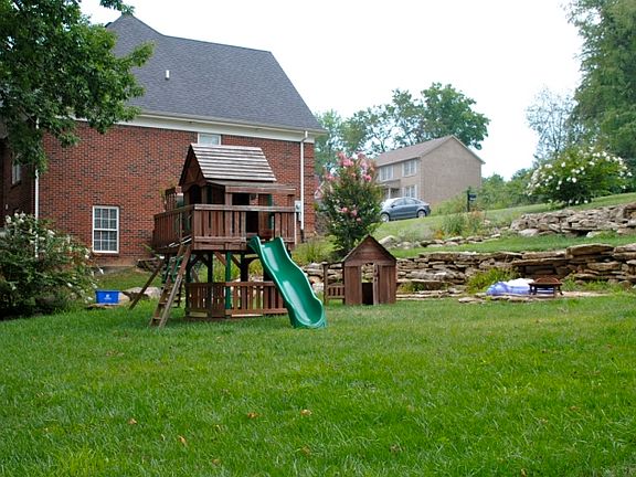 Located in Goshen Woods and the Harmony Landing school district, 1415 Nightingale Lane is a 5 Bedroom, 3.5 bathroom home with a multi level deck and a walk out basement that backs up to a natural creek and is filled with all the upgrades your clients are looking for in a home. Vaulted ceilings, a gas fireplace with granite hearth, hardwood floors, a custom kitchen with high end cabinets and a kitchen island only begins to describe the amenities. The owners have also upgraded all the lighting throughout the house (recessed lights and ceiling fans), installed plantation blinds, and finished a $30,000 upgrade to the basement which includes surround sound for an entertainment center, recessed lights, and a full bathroom. The first floor master bedroom is connected to the master bathroom, which includes a dual vanity, a standing shower, a Jacuzzi tub, and a full walk in closet. Not to mention all the little countless details in this home to make the transition for you as smooth as possible. Creasey Mahan Nature Preserve is also 0.9 miles down the street for your enjoyment. Owners also have the option to join the neighborhood pool.