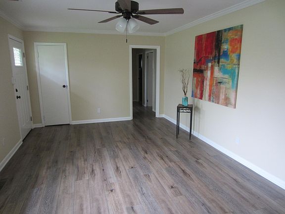 Four bedrooms and 1 1/2 bath. You'll love this newly refurbished home with plank flooring throughout and granite counters. One of the bedrooms is separate from the others and would be perfect as a home office. Washer and dryer hook-ups in the utility room. The house sits on a large lot and has a huge garage with many cabinets inside. You'll love to sit out on the back patio with the ceiling fans on hot summer evenings. No smoking allowed in or on the property.