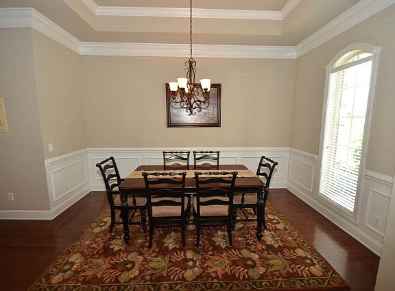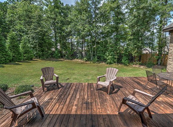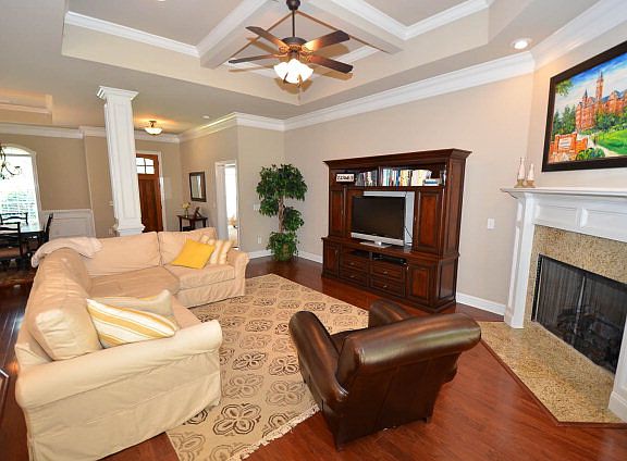 Details! 10' ceilings make all the difference! Amazing Kitchen with under cabinet lighting, stainless appliances, gas range, huge center island. Frig stays. Desk area off of the kitchen in hallway to laundry. Great room with gas log fireplace, coffered ceiling, hardwoods. Split floor plan with large master suite! Covered patio leads to deck. Irrigation, security, custom entertainment center!