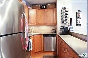 Rarely available, this upgraded 2-bedroom corner-end unit w/ 2-full bath features bamboo laminate flooring, remodeled bathrooms (w/ whirlpool tub). The kitchen boasts hickory wood cabinets, solid surface countertops & stainless steel appliances. Custom touches such as sound proofed windows, ventilated a/c system, track lighting, built-in shelves complete this immaculate unit. Open June 16th, 2-5pm
