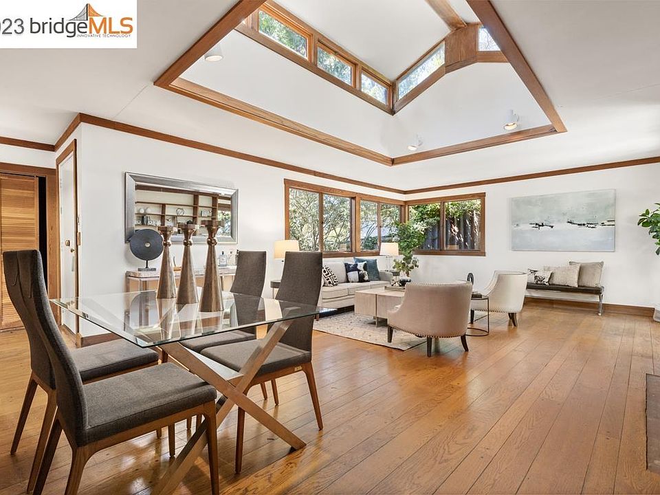 Nestled in the scenic Berkeley Hills, This Mid Century Modern Charmer remains true to its original design and is ready to for its next big thing. Designed to harmonize with its natural surroundings, this residence truly captures the essence of the era allowing the buyer to modernize or update to their specific taste. The space greets you with an open living room characterized by a raised ceiling and full of natural light. The living space is adorned with a minimalist brick fireplace contributing to the overall warmth and organic ambiance. The use of rich hardwood flooring and neutral tones throughout the interior creates a seamless flow between rooms. Situated in the Berkeley Hills, the property offers tranquility and seclusion while being just a short distance away from the vibrant amenities of downtown Berkeley and the University of California Campus, Peet’s Coffee, Chez Panisse, Fava on Vine, soon the be Farmhouse Thai and The Cheese Board Pizza Collective, just to name a few…Located just a few houses from Terrace View Park, not known to many but loved by all the neighbors. The downstairs Bed/Bath have an additional exterior door..(Potential Income) This home captures the essence of Mid-Century Modern era and welcomes its new owner to bring it into its new light..
