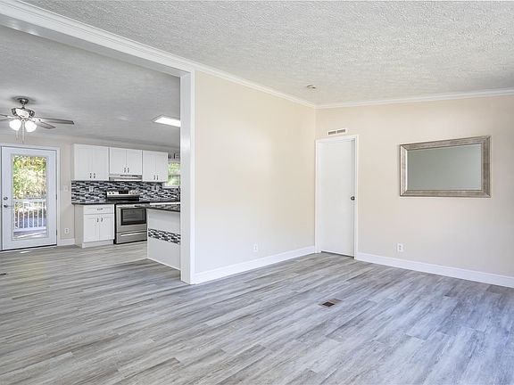 Fully Renovated 4 BR home on permanent foundation. Secluded location on one acre w lovely private screened porch, fenced yard & large storage shed. Enjoy an open design w 2 living spaces plus a spacious owners suite with sitting room (could be home office/craft room/etc.). New Laminate flooring throughout, new kitchen and baths w/ beautiful countertops & stainless steel appliances in the kitchen. HVAC and Water Heater are also new. Move right into this gorgeous home. NO HOA!!