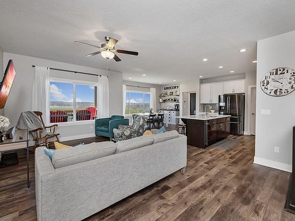 Beautiful walkout ranch w/ stunning views & no backyard neighbors. Tons of natural light pours in the open kitchen and great rm. Chef's kitchen with hood, Quartz countertops, tile backsplash, lrg island, and walk-in pantry. Lrg dining area. Oversized master bedroom w/ ample room for king sized bed. Ensuite with double vanity, walk-in closet and tile shower. Finished LL is perfect for entertaining or cozying up to the fire for a movie on the projector. 2 additional bedrooms, full bath, and plenty of storage in the LL. Covered deck with gas line for grill. Pre-wired for Christmas lights. Neutral colors and very CLEAN! All information obtained from Seller and public records.