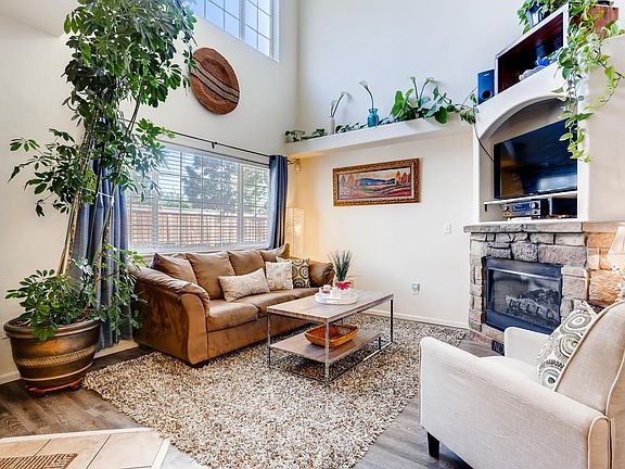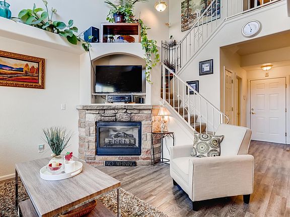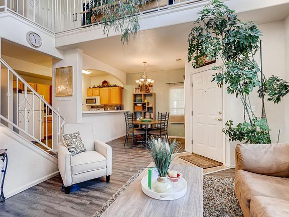 Natural light floods the open floor plan of this beautiful condo. The wonderful living room has two-story ceilings and a gas fireplace centerpiece for those cool Colorado evenings. The kitchen opens to the living room and dining area and all appliances are included. There is a large guest bathroom on the main floor by the attached garage. The second floor has a large loft overlooking the living room. You will love the large master bedroom suite with double sinks, large shower, and a walk-in closet. Another bedroom, full bathroom, and a laundry room complete the second floor. Other features include new flooring, air-conditioning, and covered front patio. The gated community has a basketball court and picnic area and is close to a bus stop, just a few minutes to schools, light rail, I-225, Aurora Medical Center, mall, and several parks. Welcome home.