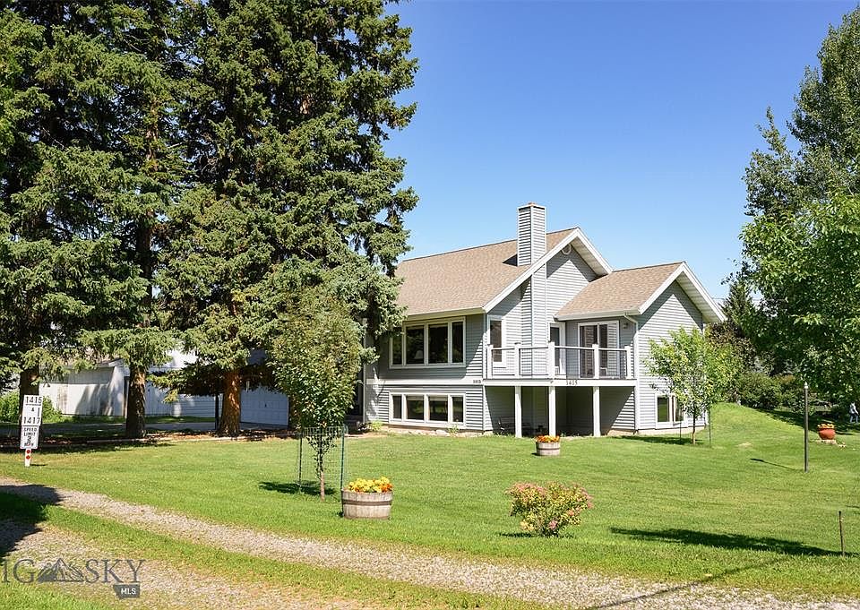 Incredible location & serene setting! Enjoy this traditional home on 1 1/2 acres, surrounded by hiking/biking trails and complete with Bozeman Creek rushing on its western border! Opportunities are endless with Pete's Hill across the street, Valley View Golf Club to the south and Downtown Bozeman only 10 blocks away! This 3 bed/2 bath home sits on lush landscape surrounded by mature trees creating privacy and natural setting. Master is on the main floor, w/ open floor plan and high ceilings. Lower level complete with 2 bed/1 bath, living area, new flooring and large windows for tons of natural light! Enjoy the outdoors from your private balcony or large backyard deck. Property complete w/ 1 additional garage and 1 large, professional grade heated shop- great for RV storage or mechanic's dream! Hydraulic Auto-lift will convey- buyer's choice. Water rights from Bozeman Creek used for sprinkler system irrigation. Tons of space for additional parking. Your desired Bozeman property is here!