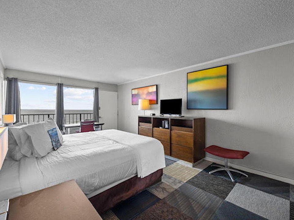 Experience comfort, tranquility, and relaxation at The Red Tree Inn. This room features a king-size bed, a mini fridge, a microwave, and breathtaking ocean views. Enjoy the refreshing scent of salt air and the feel of sand between your toes at our beachfront property. Dive into fun with friends and family at our beautiful pool. Plus, you're just minutes away from fantastic dining, shopping, and exciting attractions. Let your adventure begin! Only small or medium-sized pets are accepted and guests must pay an additional fee for each pet.