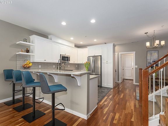 Craftsman style townhouse in the heart of Sellwood. All new siding, exterior paint, roof and decking (2020). Remodeled kitchen with new cabinetry, large pantry, quartz counters and SS appliances. Living room with HW floors, gas fireplace, built-in bookshelves and high ceiling. Primary bedroom with private balcony, oversized custom closet and beautifully updated luxury bath. Large upstairs flex space with built-in cabinets. Second primary bedroom upstairs with walk-in closet and shared bathroom. BALI custom window coverings throughout. Two car garage. Close to shops, restaurants, New Seasons and more. Walkscore 93. Bikescore 99. Low HOA dues of $220/month. [Home Energy Score = 8. HES Report at https://rpt.greenbuildingregistry.com/hes/OR10214410]