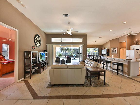 Gorgeous Florida Retreat on water! Well-appointed upscale custom built home by Timberline Builders. All utility assessments paid. This retreat offers 3 bedrooms, 2 bathrooms, Study/Den with French doors, Great room with dining area and an oversized screened lanai with pool. This home is situated on a canal that leads to the largest of Cape CoralâEUR(tm)s lakes, five fresh water lakes plus 32 miles of canal. This magnificent home includes grand 8 ft. interior doors, 9 ft. sliders, Plantation shutters, and an extra long garage with workshop area. This home welcomes you with double front doors with leaded glass, tall ceilings and modern tile. All living space and most bedrooms provide stunning views to the canal and pool area through French doors and sliders. Large master suite has a master bath with separate jetted tub, separate shower, dual sinks, plantation shutters. All solid surface counters. This home boasts a very open floor plan with tremendous light throughout, high ceilings, tile flooring and many upgraded design choices. Hardscape all around home and down to dock. Large lanai area with large solar heated pool and outdoor living space.