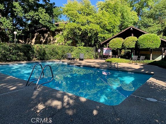 This spacious 2 bed/2 full bath Sheridan Commons Condo is truly a rare find! The living room boasts vaulted ceilings for a light, bright and spacious feel with access to a balcony that overlooks a second story view of established trees along Sheridan Avenue's quiet street. This floor plan is particularly special, each bedroom and associated bathroom are located at opposite ends of the living room, the primary bedroom with full en-suite rests toward the back of the unit, while the secondary bedroom and full bath are situated at the front of the unit, thus providing privacy between each bedroom/bathroom. Whether you are an owner occupant or wanting to expand your investment portfolio, this unit affords a floorplan that appeals to both the owner occupant and/or the tenant. Unit includes: New stainless steel kitchen appliances; dishwasher, refrigerator, electric range/oven, built in microwave and a personal in unit full sized washer and dryer. Additional features: Kitchen pantry and an abundance of storage cabinets throughout kitchen and both bathrooms. Balcony also houses a sizable storage closet and newer water heater. Freshly painted interior, new window blinds, newly carpeted bedrooms with large closets and easy to maintain tile throughout kitchen, main living space and bathrooms. Central heating and air paired with ceiling fans in both bedrooms and the main living space will keep you cool and comfortable year round. Take a dip and relax around the newly resurfaced common area pool, complete with onsite public bathrooms available to tenants & their guest/s. A private carport, ample guest parking, with the water, garbage, and landscaping cared for by the HOA makes for even more desirable amenities. Just minutes to Chico library, bus stop, HWY 99, grocery, downtown, CSU, Butte and many of Chicos amazing public schools, coupled with Bidwell Park and Enloe Hospital less than a mile away, you are truly situated in the perfect pocket! Don't let this fantastic home pass you by.