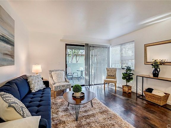 Looking for a quiet, peaceful place to call your own? Look no further. This darling downstairs condo has everything you could ask for. Light, bright and cheery space. This is an end unit. Freshly painted interior. Laminate flooring in the living space and bedroom. This one bedroom 1 bath condo offers privacy and storage. Enjoy a bbq on the private covered patio with a fenced yard. Access gate in the back for easy access to mailboxes and pool. Assigned covered parking spot near the unit. Recently painted exterior. Well maintained swimming pool.