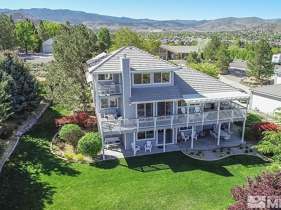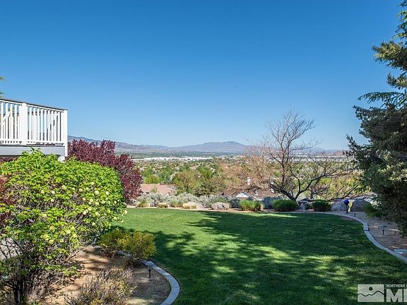 This custom home has it all ~ spacious, immaculate home with a large backyard ~ outstanding city and mountain views ~ picturesque, large-lot Virginia Foothills neighborhood ~ 2-story home with a huge, nicely finished walkout basement underneath ~ wraparound covered deck with 3 sitting areas & gas firepit ~ primary suite offers private covered deck with city views, jetted tub & large walk-in closet ~ remodeled kitchen features custom cabinets with slide-out shelves, white granite, island wrapped in cabinetry, and breakfast nook with mountain views ~ gorgeous yard ~ No HOA ~, Huge family room with attached game room features stately slate fireplace and plumbing hook-ups for wet bar ~ spacious laundry with sink and cabinetry ~ paver and concrete veranda in backyard with charming covered swing and multiple sitting areas ~ mature landscaping lends privacy to spacious backyard ~ huge driveway for guests ~ oversized 3-car garage ~ rain gutters ~ tons of storage closets ~ walking distance to Virginia Foothills Park ~ HVAC replaced April, 2025 ~ tile roof replaced 2012 ~ exterior paint 2 years ago ~ new carpet ~ the kitchen is plumbed for a gas stove ~ quick access to Mt. Rose Ski Area, Lake Tahoe, and all the best recreation the Sierra Nevada Range has to offer.
