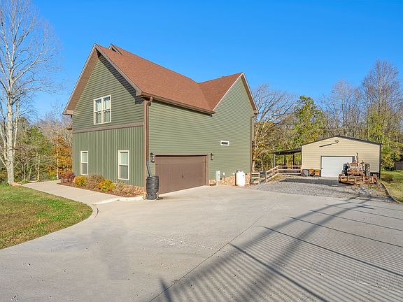 ****SELLER TO PAY $15K IN BUYER CONCESSIONS!****NO HOA & NO CITY TAXES! This peaceful 2.74-acre retreat welcomes you with a long driveway, detached garage + covered patio, fenced yard, chicken coop (with chickens!), and a gated path leading to a creekside walking trail. Inside, you’ll find vaulted ceilings, a stone fireplace, handcrafted floors, and stairwell lighting. The kitchen features custom cabinetry and quartz countertops. The first floor primary suite offers a walk-in closet and a spa-like bath with double vanities and a tiled shower. Upstairs includes two oversized bedrooms, plus a second primary suite with a huge walk-in closet and barn-door entry to another tiled shower. + Massive bonus room for a fifth bedroom, office, or movie room! 20 min from Downtown Clarksville! ***Pond is designed for overflow to go to creek, per Builder. Seller has not had any flooding issues. House sits up higher than pond.*** Two French drains have been added for proper water flow in the backyard.