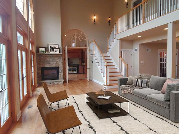 This expansive custom home offers an unparalleled living experience in a private gated community within the Wilson School District. With 4 bedrooms, 2.5 baths, and a 2-car garage, it boasts stunning lake views from every room through magnificent custom windows. Features include vaulted ceilings throughout and an open floor plan with first-floor natural cherry hardwood floors, a first-floor bedroom ideal for use as a nanny or in-law suite. The large kitchen is a chef's dream, equipped with a French stove, a see-through gas fireplace, copper farm sinks, granite counters & tile floors, a separate butler's kitchen pantry adds convenience. Enjoy outdoor living on two concrete decks, with summer sinks and gas connections for grilling. The Master Suite is a retreat in itself, featuring a see-through fireplace, a whirlpool bath with lakefront views, heated tile floors, expansive walk-in closets, and balcony access. For further details and appointments, please call.