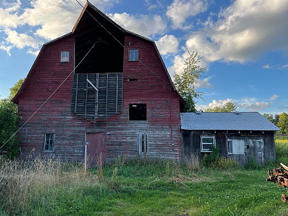 Beautiful old farmstead site on almost 55 acres of absolutely gorgeous land, with mature trees and an ag field currently in hay. Mud creek flows through the property making some really stunning sights and sounds that must be seen to appreciate. Wildlife galore and producing fruit trees. The home is in really rough shape but the antique barn and huge 30X72X18 high pole barn add lots of appeal to the property!