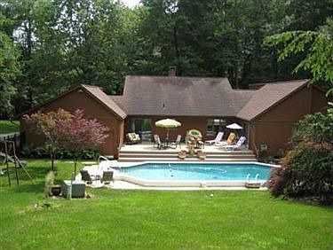 Total privacy and wooded seclusion on 8 acres in the city of Massillon with 4-wheel trails and public utilities...Unbelievable! This stunning contemporary ranch boasts a massive amount of space, unique features, and impeccable taste in decorating. Entertain in style with the spacious rooms, inground pool with large deck, and lower level with tables and bar set up like a restaurant that opens to the pool area. Features include hardwood floors, stainless appliances, built-ins, double-sided fireplace, ample closets throughout, cathedral ceilings, huge finished lower level w/bar, exercise room w/sauna, large trex deck leading to inground pool. Escape to the master retreat w/wooded cathedral ceilings, loft sitting area, remodeled bath w/granite counters, tile shower, jetted tub, 2 walk-in closets & more. Updates include furn, waterproofing, sump pumps, H2O htr, stained siding, deck, remodeled baths. A must-see home for the discriminating buyer who wants it all!