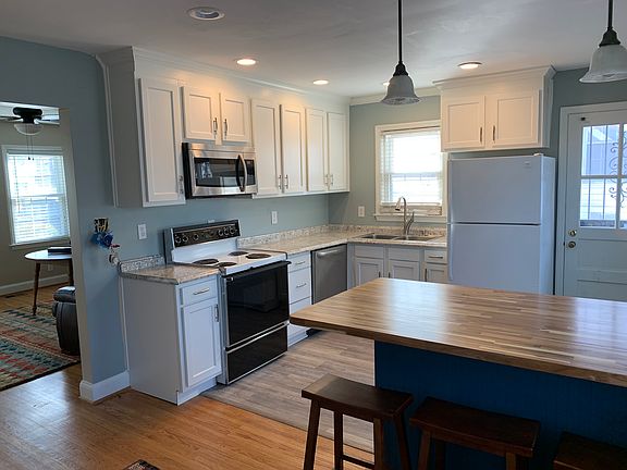 This cozy 4 bedroom / 2 bathroom home in Audubon Park home is centrally located for college students. This home has remodeled kitchen with new appliances, island with butcher block countertop and bar stools. There are 2 large bedrooms on 1st floor with spacious closets and ceiling fans. The 1st floor also includes full bathroom and spacious living room. The 2nd floor has been remodeled with new bathroom and 2 bedrooms with ceiling fan and custom barn doors for closets. The walkout basement is partial finished with washer annd dryer. Plenty of storage and space for 2nd den. This home has hardwood floors on both 1st and 2nd floors. The backyard is fenced with large patio area and garage. Great location for UL and Bellarmine students. Owner provides all kitchen appliances including stove, microwave and dishwasher and washer and dryer in basement. Tenant is responsible for all utilities. Owner provides weekly garbage and recycle pickup. No pets and smoking allowed at this property. This property is not setup to accept Section 8 housing.