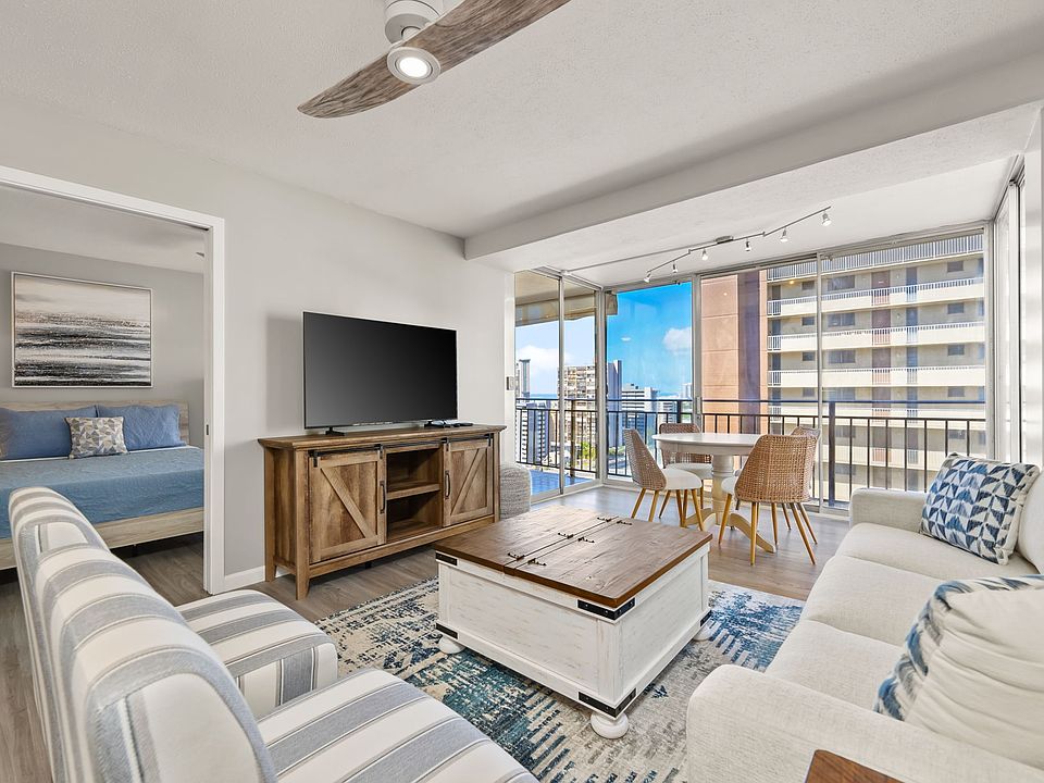Welcome to your Hawaiian escape! This 12th floor corner unit boasts peekaboo ocean views and stunning sunsets from your spacious lanai. Enjoy your morning coffee and relax in the open and bright living area. Unwind at the rooftop pool with panoramic views of the mtns, city, and ocean. Located just minutes from hospitals, parks, restaurants, and beautiful beaches, this oasis offers comfort and convenience for your ideal getaway! Come experience the best of island living in this prime location!