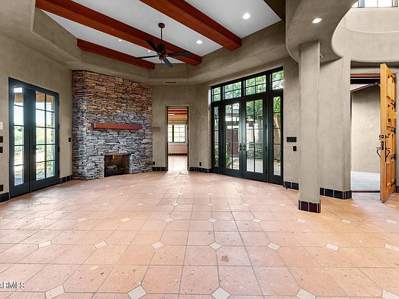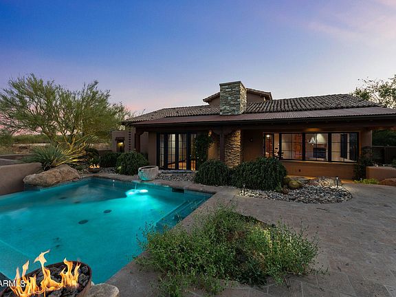 Experience Luxury Living in the Monte Vista Ranch Community. Nestled in an exclusive, gated, master-planned community lies a stunning home that exudes elegance and exceptional craftsmanship. Step into the charming courtyard and hear the gentle fountain, then enter the front door to witness outstanding design. The spacious 3 bedroom, 3 1/2 bath home includes a bonus room with an exterior entrance, perfect for use as a home office or game room. The gourmet kitchen and hearth room feature Viking stainless steel appliances, a wine chiller, custom white oak cabinetry, granite countertops, and a large pantry. Natural Cantera stone floors adorn the entry, living room, dining room, and kitchen, while rustic reclaimed hardwood floors with ceramic tile base enhance each bedroom. Additional features of this luxurious home include: