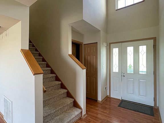 3 bedroom, 2-1/2 bath Townhome. Beautiful 2 story entry. Open LivingRoom/Dining Room. Handy kitchen with appliances. Main floor laundry. Main floor guest bath, walk-in closet and 2nd closet. 2 more nice size bedrooms and a full bath with tub/shower complete the upper level. Private patio. 2 car attached garage with keyless entry. Blacktop driveway. Edge of town location, handy to everything. Lawn care and snow removal included in the $40/month HOA fee. Water heater (2005). Water softener (2014). Roof (2012).